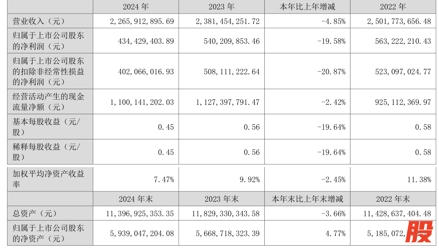 数据显示闻喜,2024年公司加权平均净资产收益率为7.47%,较上年同期下降2.45个百分点。公司2024年投入资本回报率为5.49%,较上年同期下降1.48个百分点。